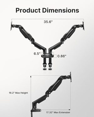 - Comfort Is Fundamental – Our dual monitor arm for desk raises monitors to eye level, improving posture, relieving strain on neck & shoulders while increasing productivity levels.Height adjustable, full motion design lets you work in a more comfortable ergonomic position.